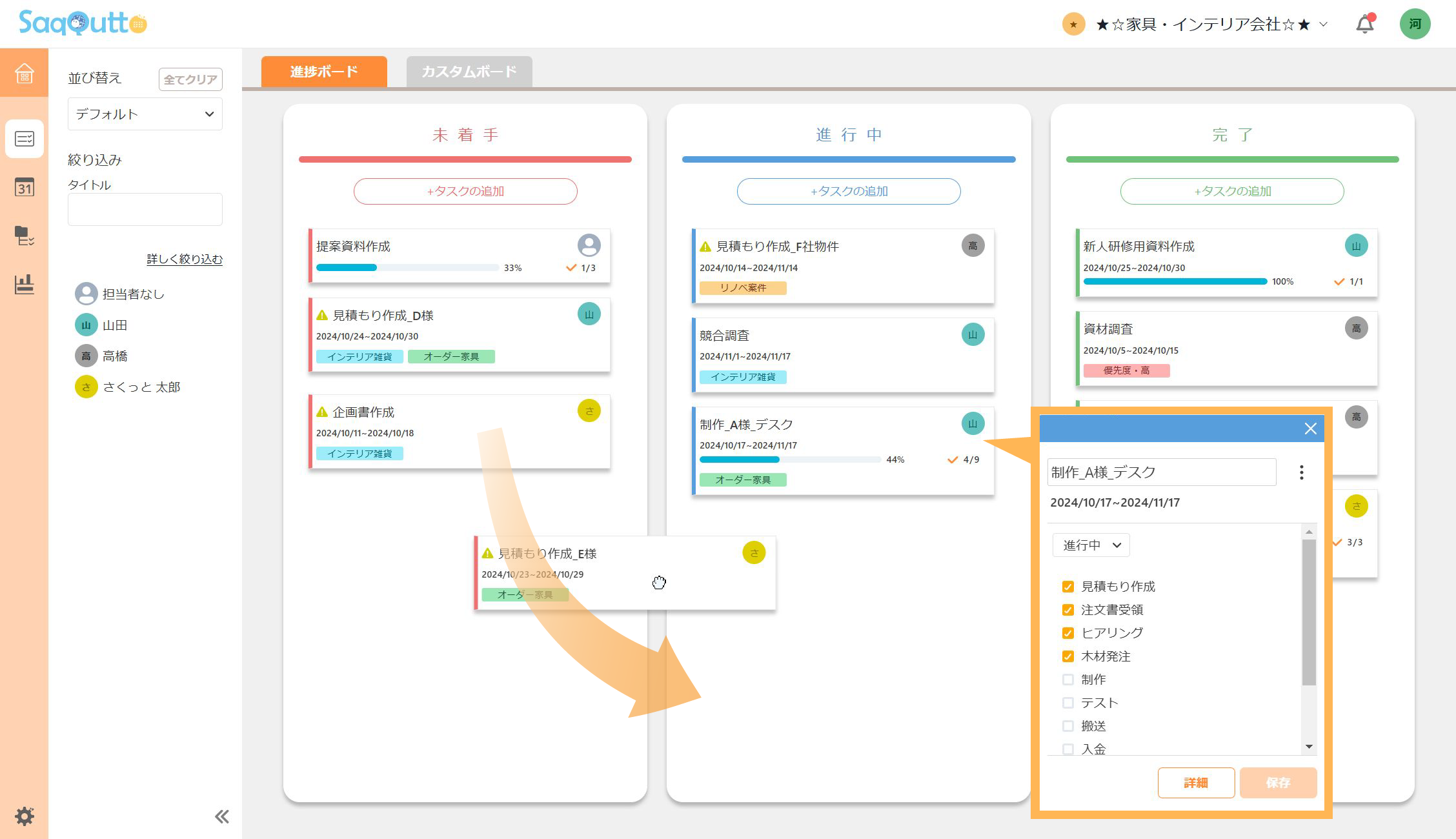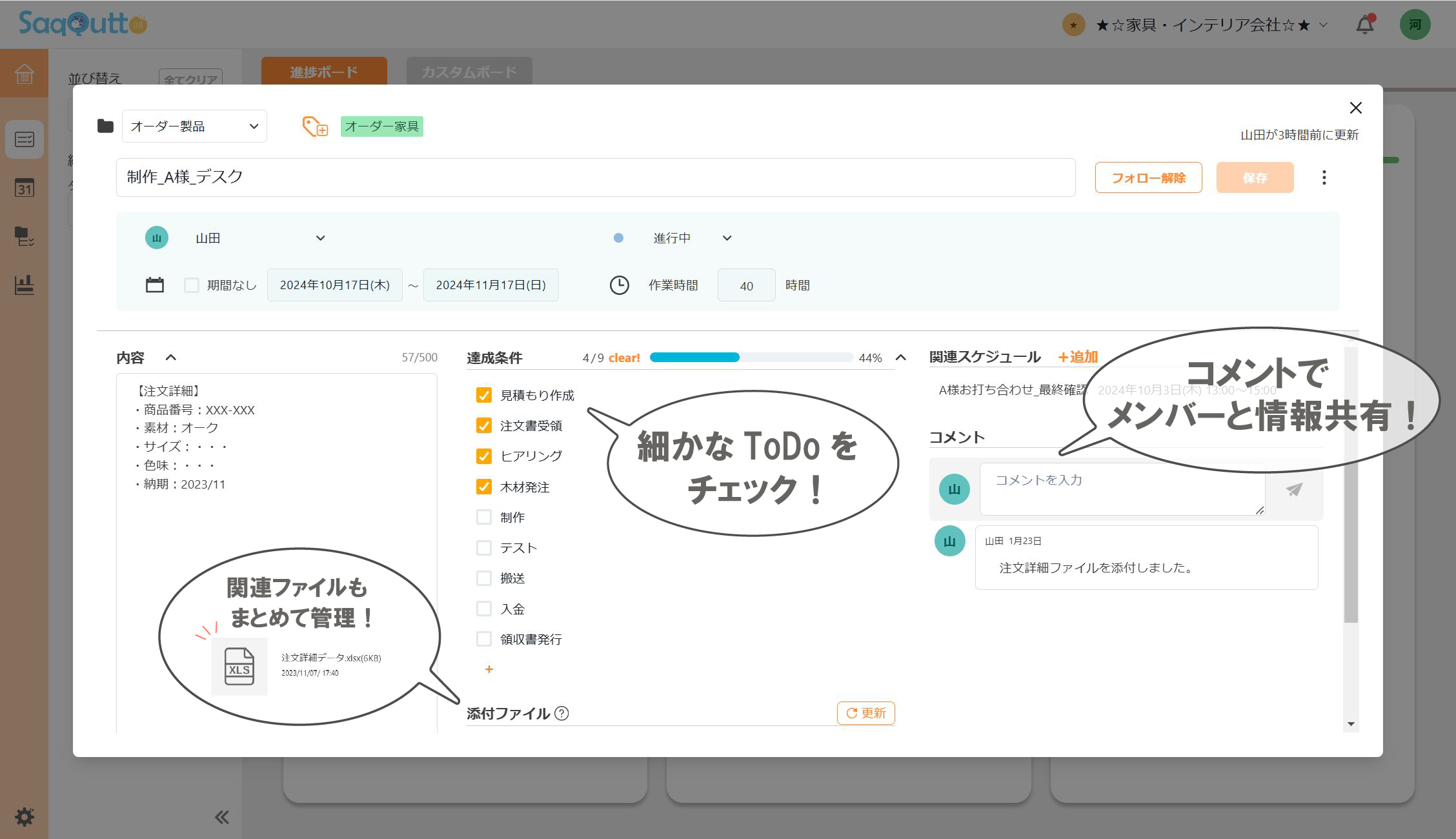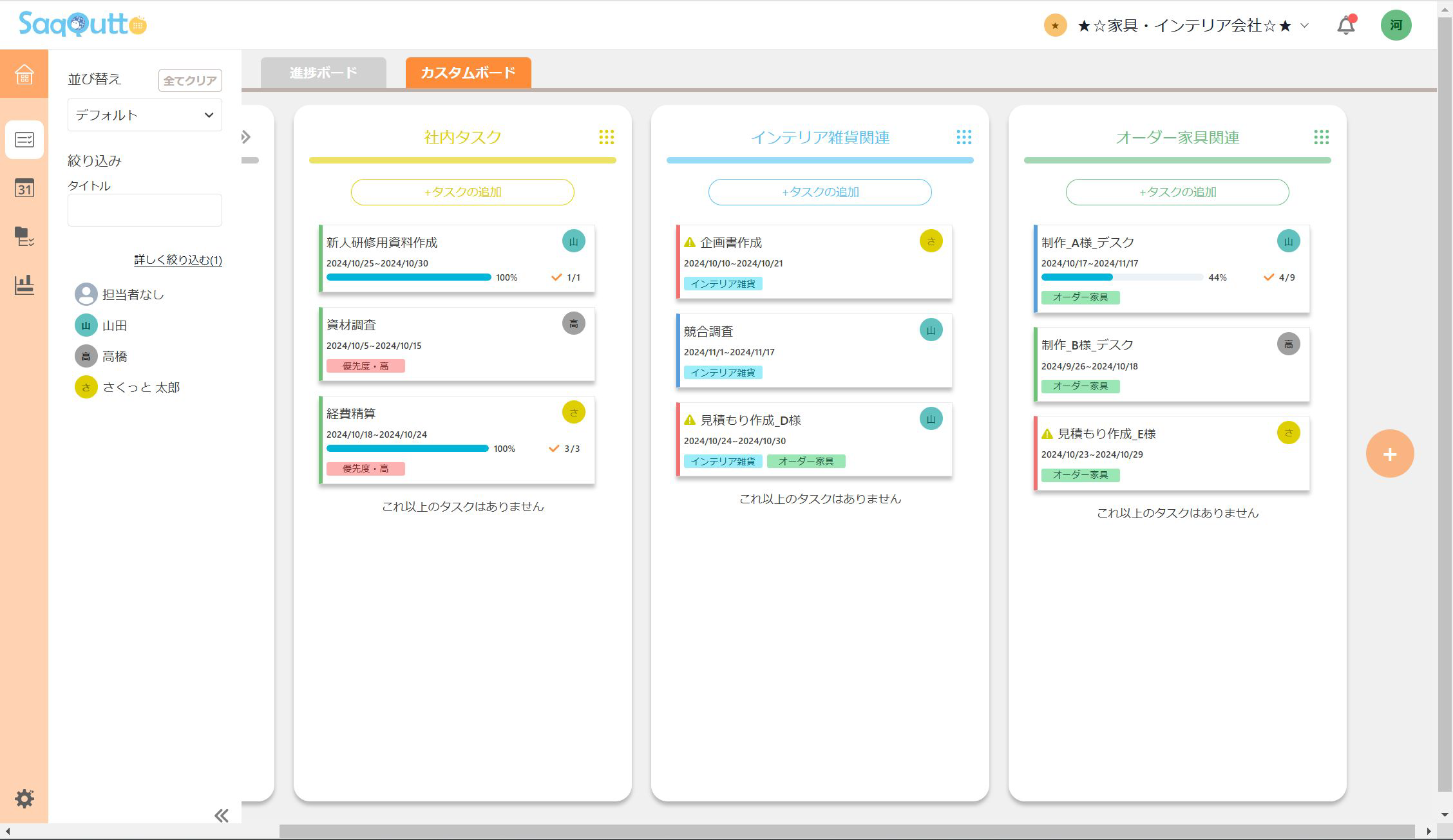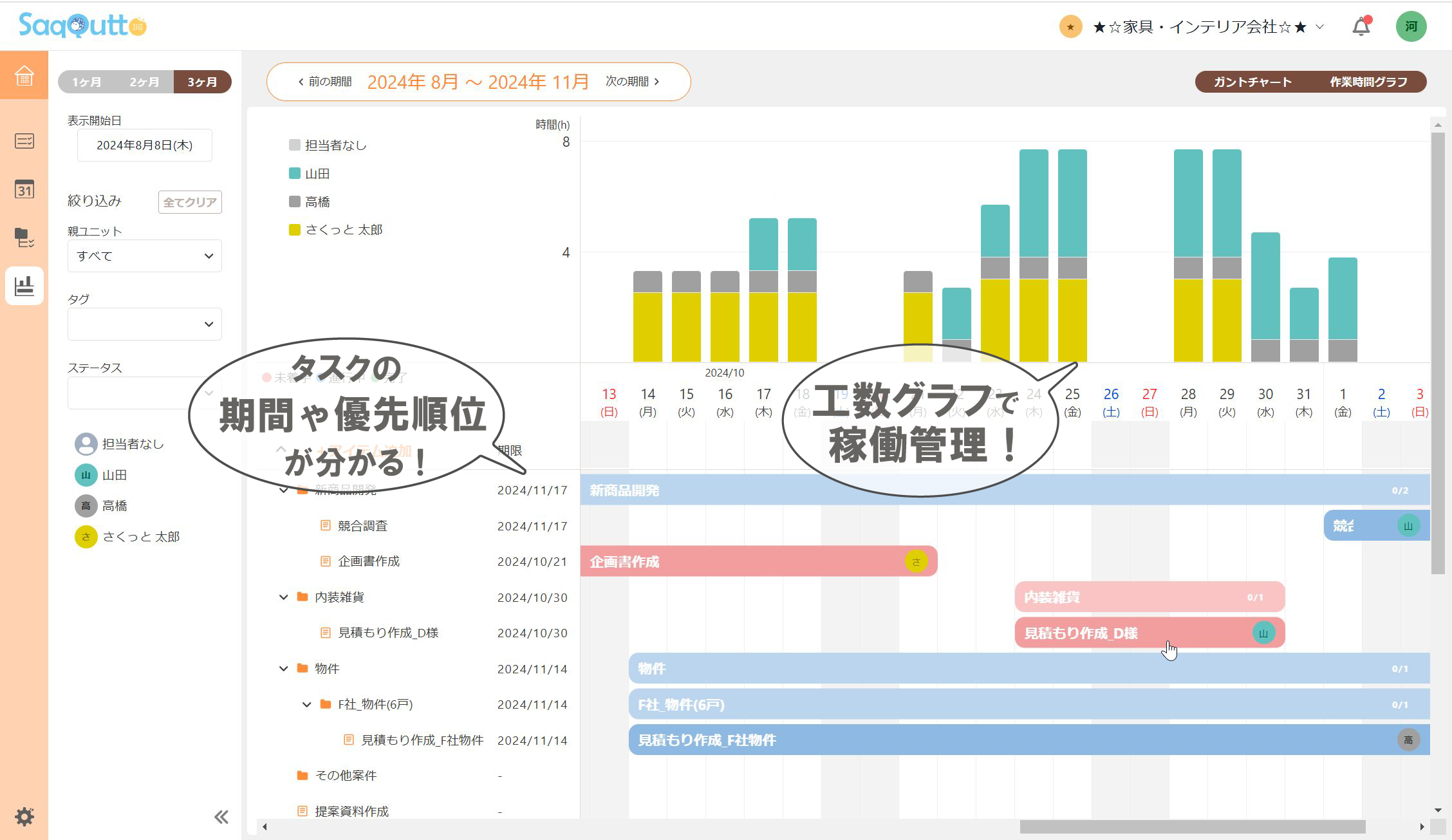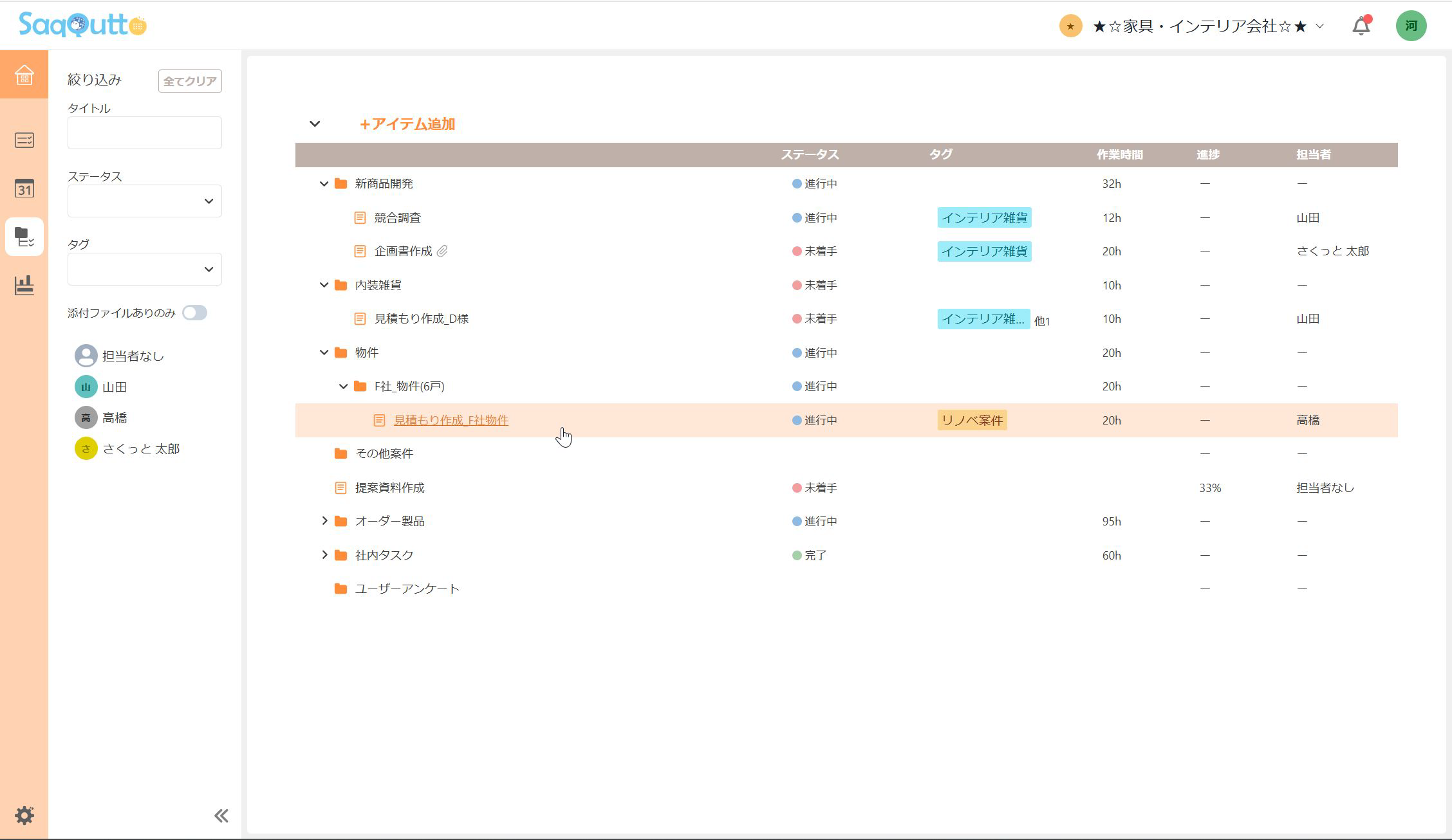 SaqQutto(サクッと)は、導入も運用も簡単なプロジェクト管理ツール。操作は分かりやすく、デザインはシンプルに。ここまで簡単なのはSaqQuttoだけ。