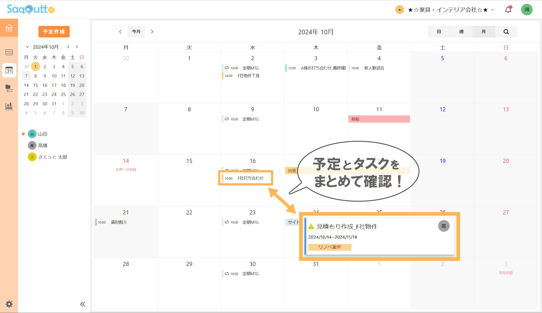 自身が関わるタスクやスケジュールの情報がまとまっているので、