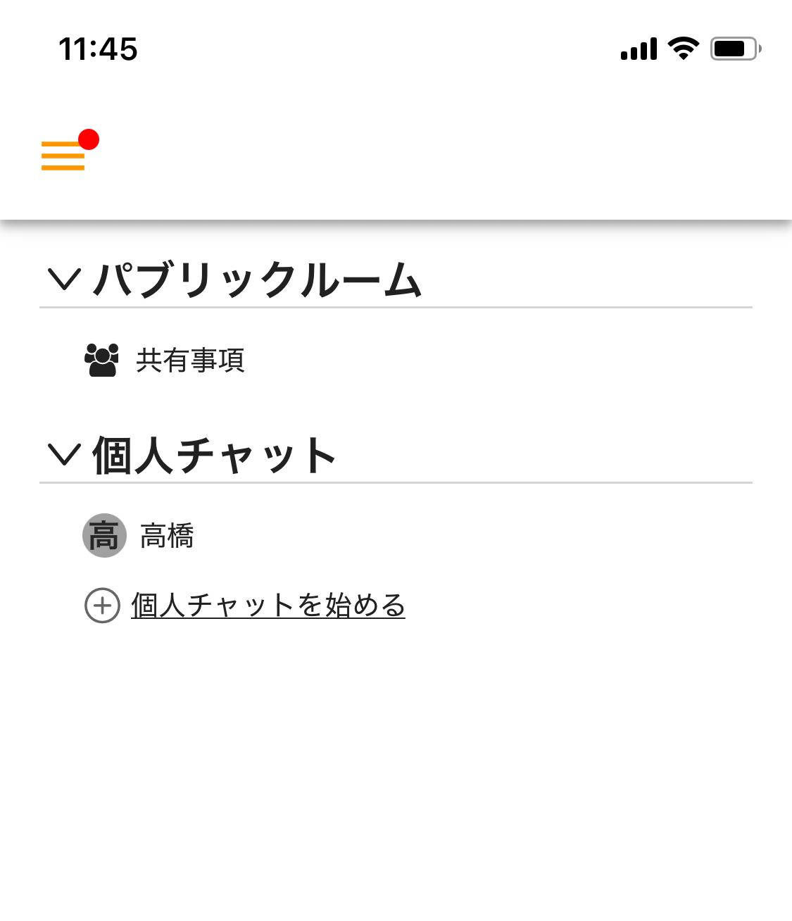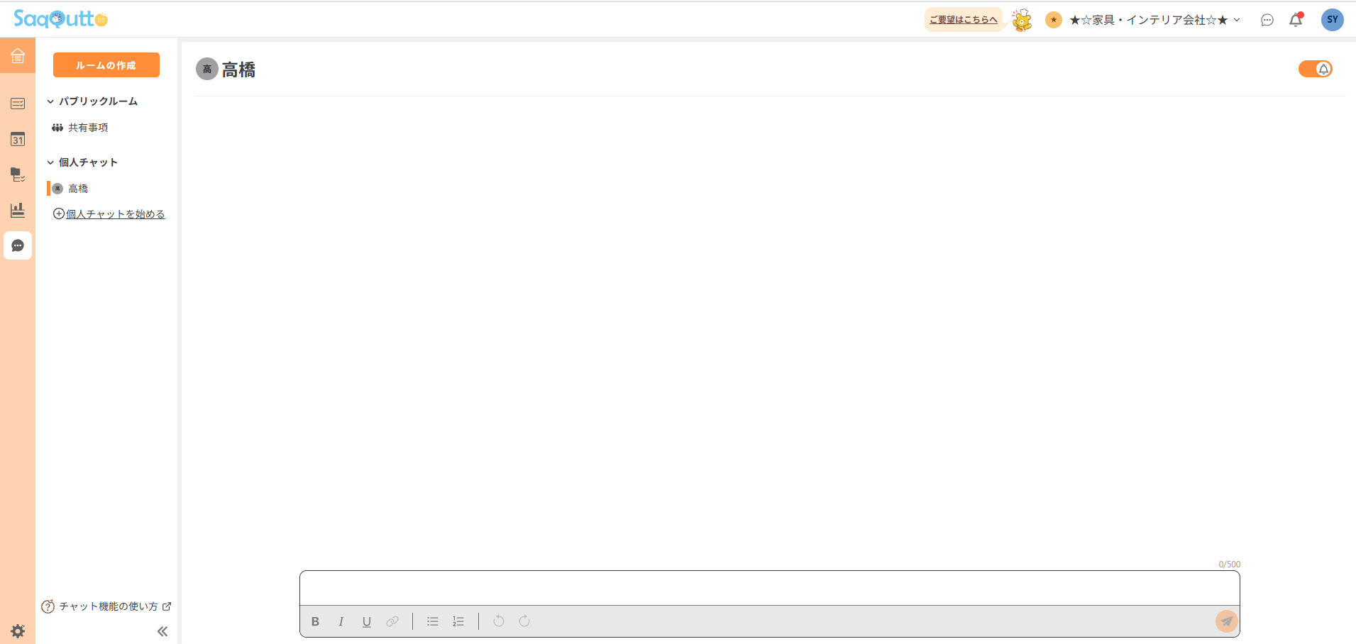 チャットを始めると、個人チャットのルームが表示されます。